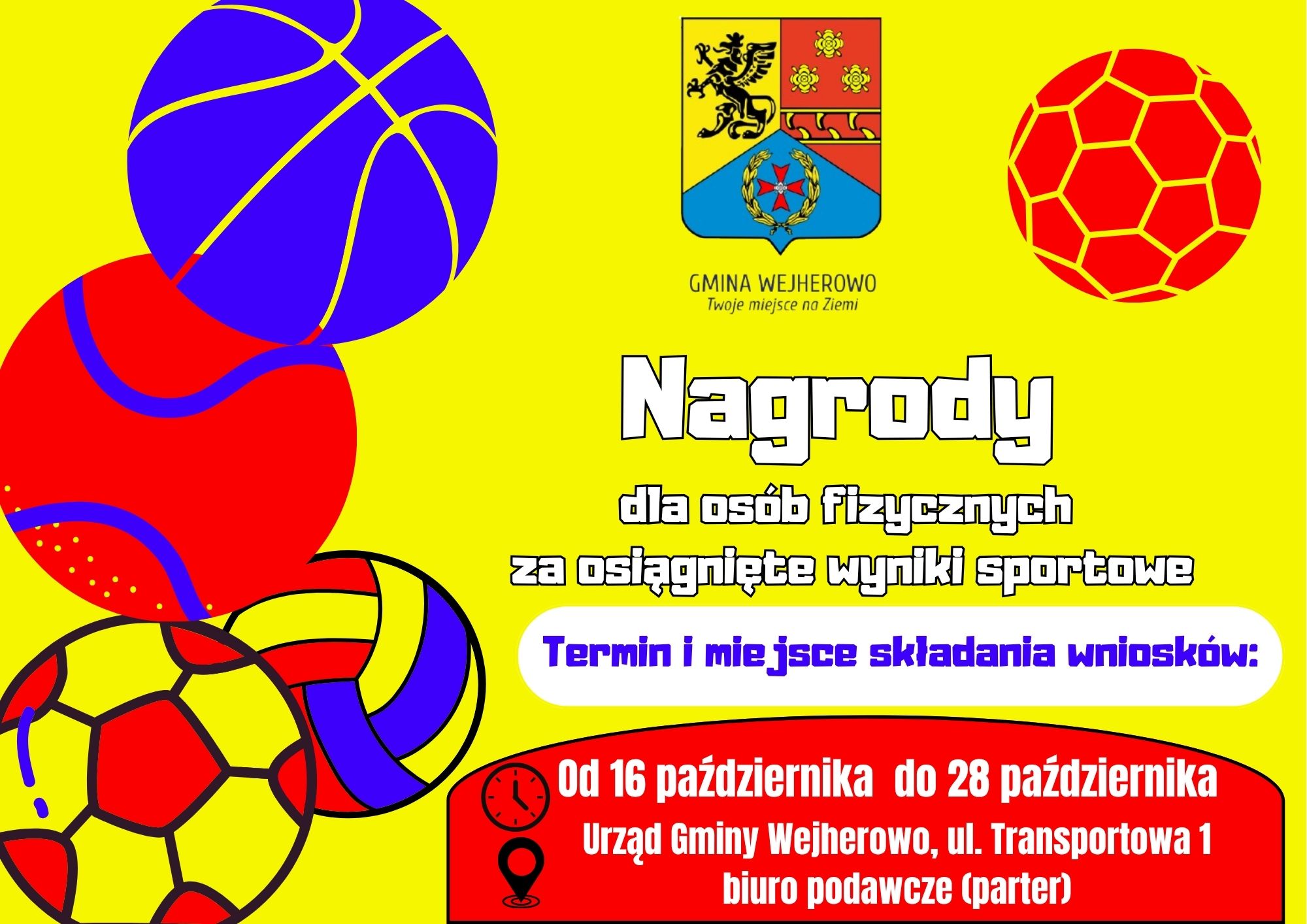 Serdecznie zapraszamy do składania wniosków o Nagrody Wójta Gminy Wejherowo przyznawane dzieciom, młodzieży oraz dorosłym za wybitne osiągnięcia sportowe w roku szkolnym 2024/2025 (okres od 1 września 2024 r. do 31 sierpnia 2025 r.).
