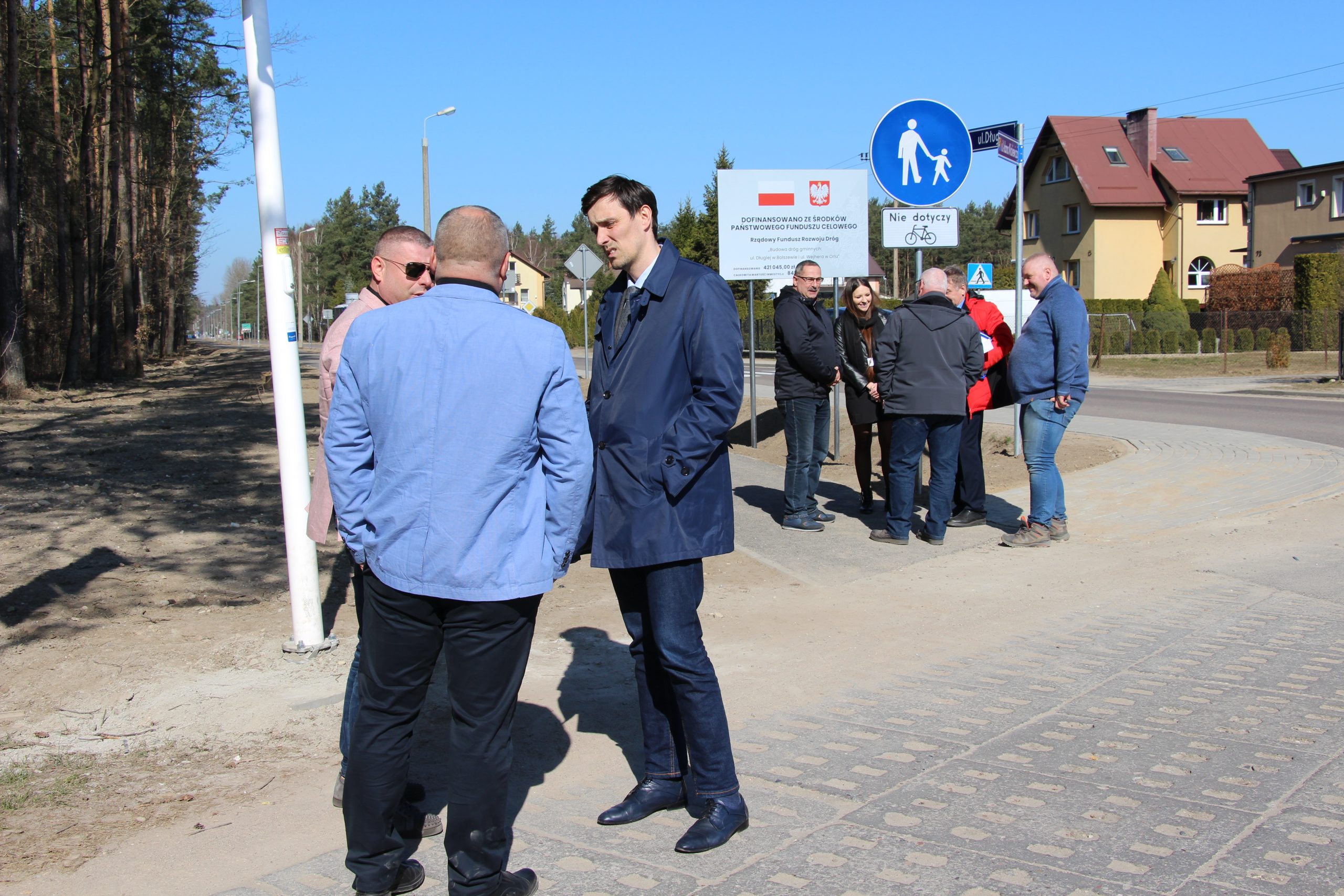 Zakończyły się prace przy długo oczekiwanej przez mieszkańców inwestycji- budowie ciągu pieszo-rowerowego między Orlem a Bolszewem w ramach zadania pn. “Budowa dróg gminnych: ul. Długiej w Bolszewie i ul. Wejhera w Orlu“. W dniu 24. marca odbył się oficjalny odbiór robót budowlanych, w którym udział wzięli m.in. wójt Przemysław Kiedrowski, przedstawiciele wykonawcy- firmy LATO BRUK Eugeniusz Latosiński, sołtysi obu miejscowości- Edmund Bianga ( Bolszewo) i Jacek Macholl ( Orle).